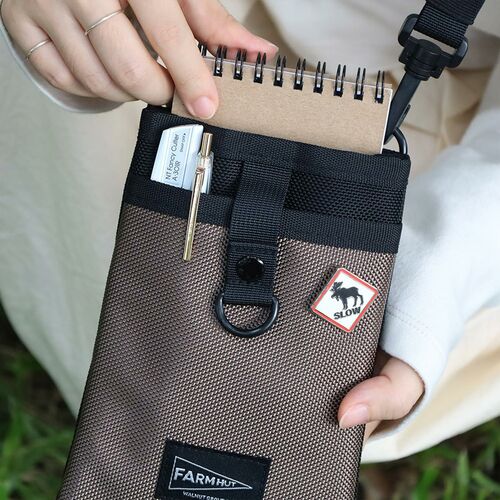 散歩やちょっとした買い物などで身軽にお出かけできるスマートフォンポシェット。丈夫な1680Dナイロンの生地でデイリーユースにぴったりです。本体とストラップにはカラビナやキーリングを装着できるDカンのループ付き。ショルダーストラップは着脱可能で、最長135cmまで長さ調整ができます。